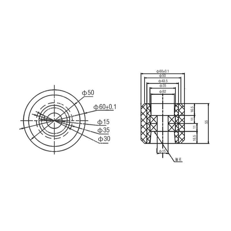 Productus cylindrus pressus diameter 60mm habet et altitudinem 55mm. 6202 gestus ornatur. Hoc exemplar afferens habet magnam vim et celeritatem gyrationis oneris afferentis, et ad missiones applicationis cylindro escalator aptus est. Usus CPU (materia plastica alta) stabilia physica et chemica proprietates diu conservare potest et servitium vita tribulorum prorogare potest; scutulis utuntur gestus et materias altae, quae validam habent facultatem onusti portantes ac necessitates diversarum onerum escalatoris occurrere possunt. opus operating sub conditionibus.
