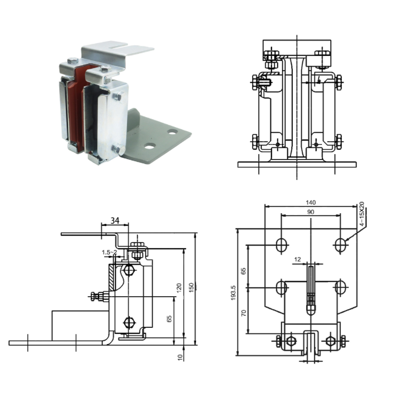 FKD-009 (8K, 13K) et FKD-211 (9mm) ductor calceorum elevatorum sunt principales partes faciendae ad elevatores diversarum specificationum destinatae, quarum FKD-009 convenit elevatoribus 8K et 13K, cum FKD-211 aptum est 9mm elevatoribus. Hi ductore calcei ordinantur ut maximam celeritatem operandi 1.75m/s sustinere possint et pressionem anteriorem usque ad 1450N et lateralem pressionem 850N sustinere possunt, stabilitatem et salutem elevatoris in operatione procurantes. Etiam aptae sunt ad ducendos superficies railes cum latitudine 9mm, 10mm et 16mm, amplis applicabilitatis pro elevatoribus praebendo.